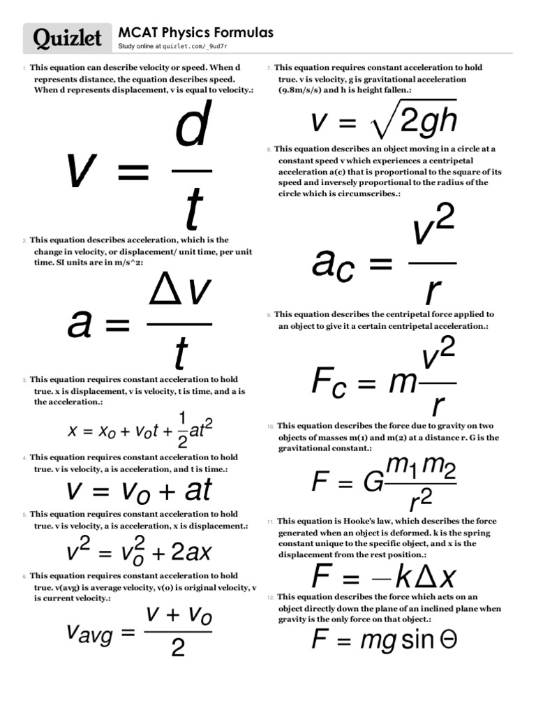Study flashcards on mcat physics equations at cram com